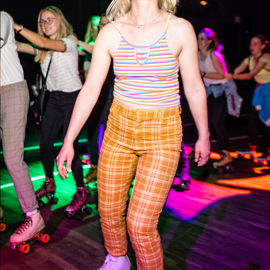Yes it's the brightest, rolliest and probably coolest party in town: Rollschuh Disco! 80s, 90s and crashing disco hits even make you dance and sing on your roller skates :) You don't need your own skates, we have enough for rent (included in the entrance fee).
